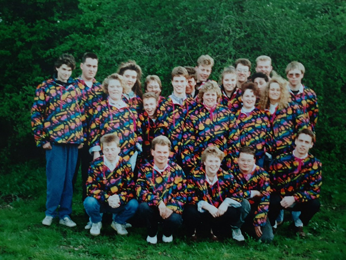 Onderste rij: Jan Reijs, Mike van Haren, Karin Brands, Peter van Haren (dikke Piet) van Haren, William de Kleijn.